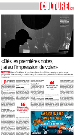 Loris MittazBLACKOUT Indépendant | Presse : Le Nouvelliste – 19.10.2025 Schweizer Illustriet – 17.10.2025 lorismittaz.com